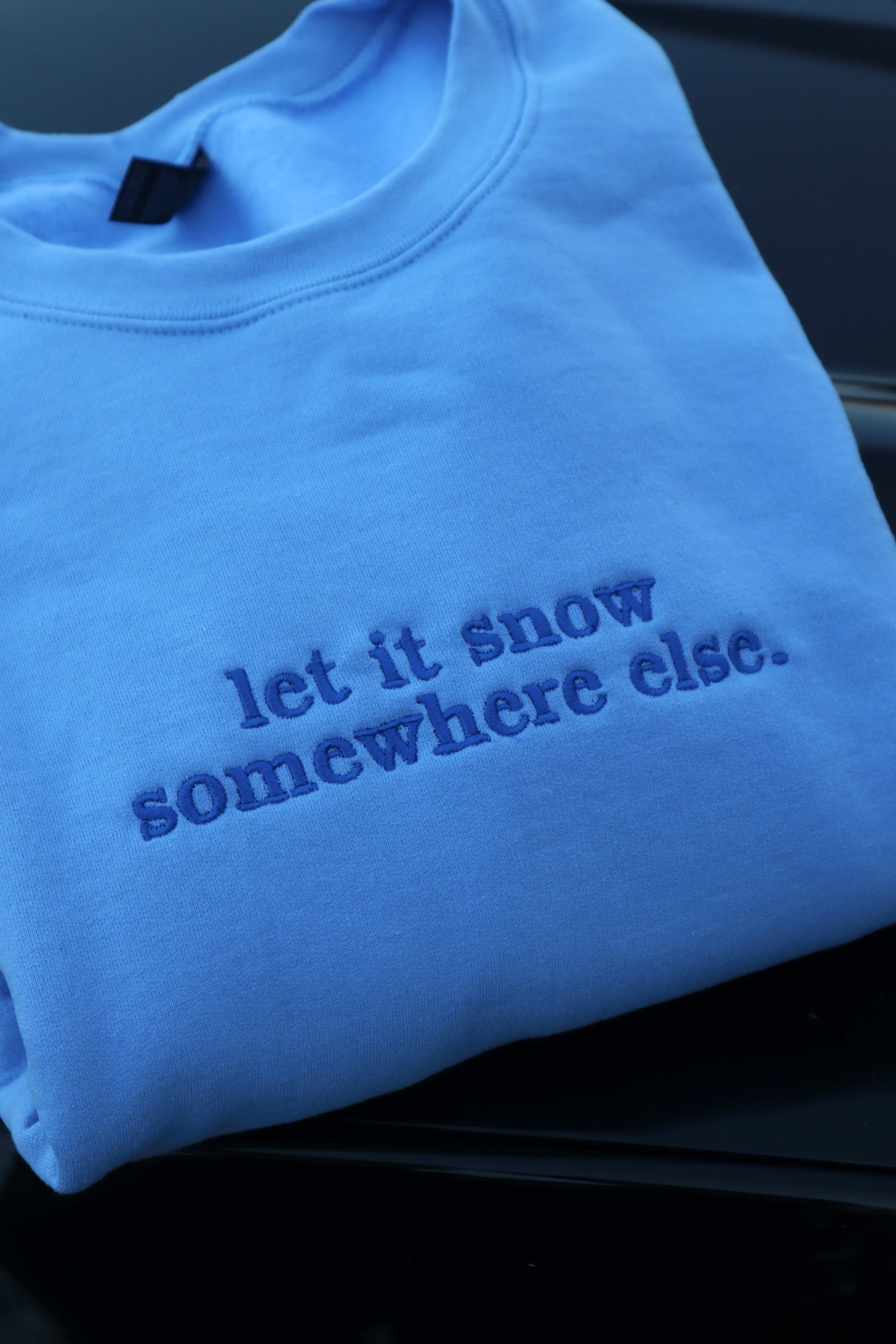 Embroidered “Let it Snow Somewhere Else” Holidays Christmas Hoodies or Crewnecks Unisex · Classic Fit · Long Sleeve · Adult